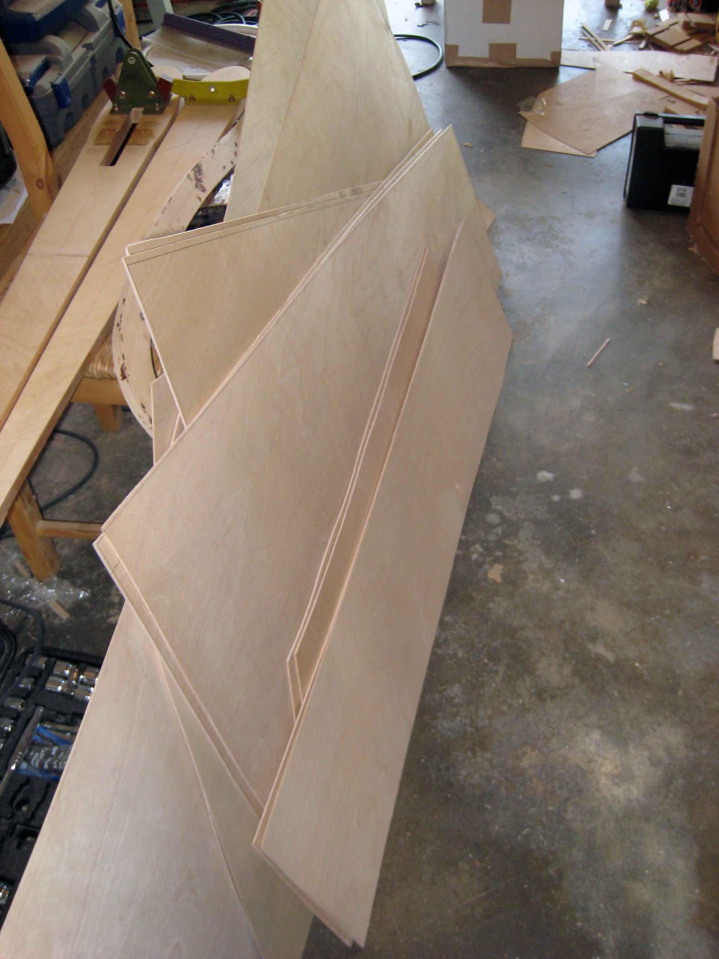 I still had not got the 1.5 mm skin plywood required for the tail so I went out to my plywood store and then cut out all the 1.5 mm tail skins. The fresh plywood sure does smell good right after cutting it all up. It seems to be a different brand of metric finnish birch plywood but the quality and grade is very good.