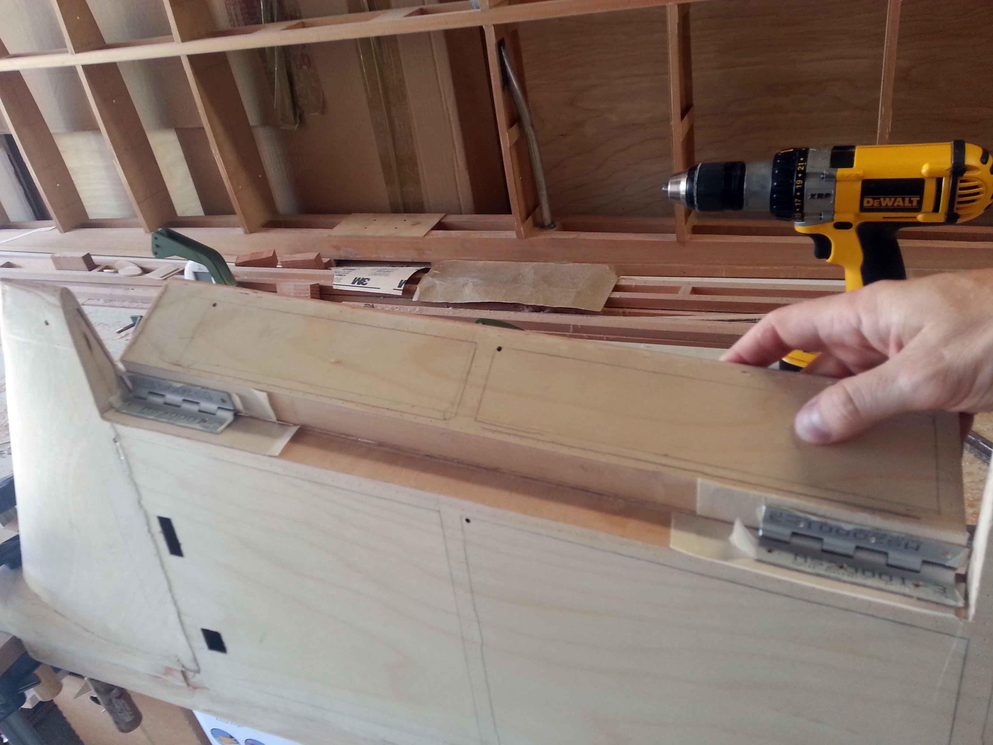 To install the hinges, I used the "instant glue the tape together" method. I kept the pins installed so the placement of the trim tab would remain constant relative to the hinges, then took the pins out to drill the 3/32" pilot holes. Centering the pilot holes is important for keeping the alignment once you screw the hinges in. I had to use this drill bit extension and hex bit to drill the holes near the edge of the trim tab.
