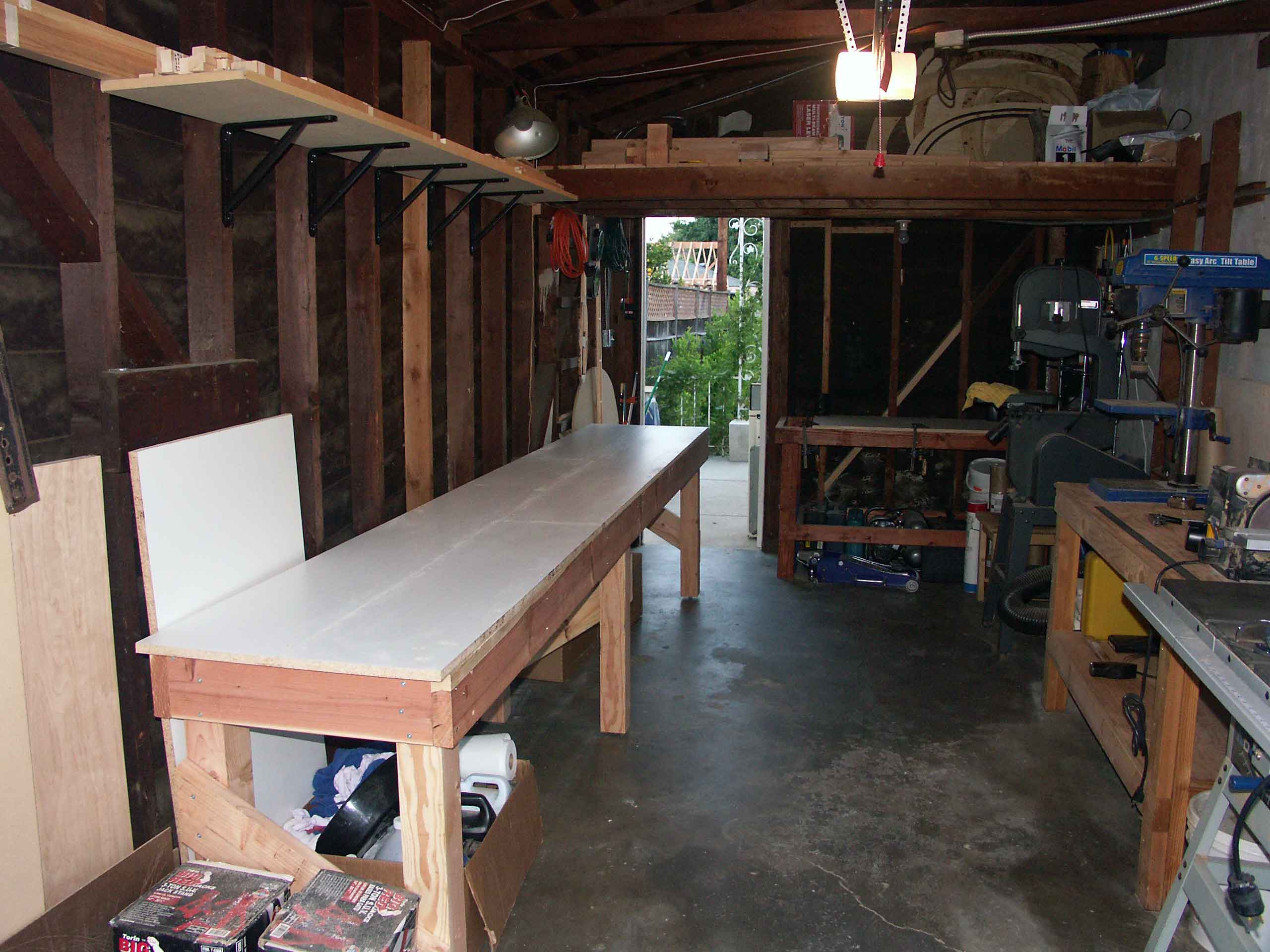 I fastened the table top down today and cleaned up the huge mess I've made this past week. I used some wood patch to cover up the screws and fill the seams between the table top boards. The end result is that I'm ready to get back to making parts on my nice new long table. Other Falco builders claim that a significant portion of time spent building is used to make the jigs, so I don't feel too bad that I took so much time to make this table.