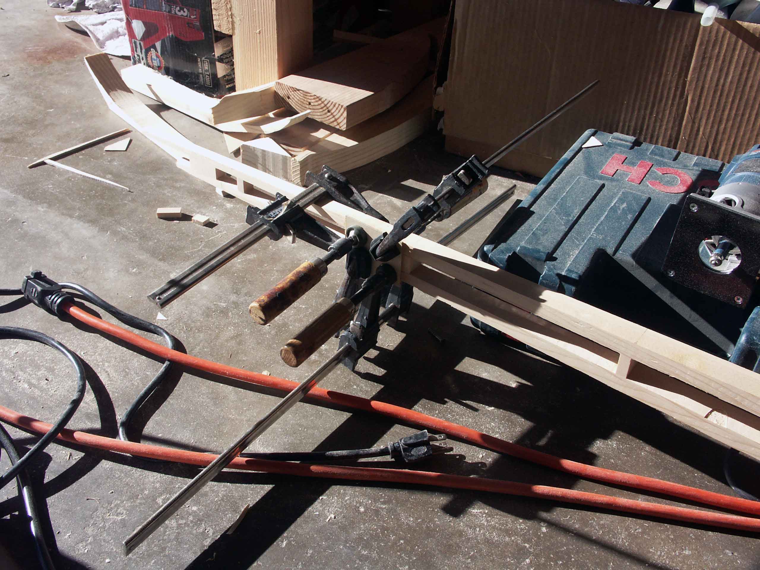 Today was the warmest day in a while so I got to take care of a bunch of odds and ends waiting to be glued for the tail spars. First thing I did was glue the center section of the main stabilizer spar plywood backing. I'm just going to glue the different thickness sections on separately to make it easier for myself. I used pieces of thick plywood to protect the gluing plywood from the clamps and distribute the clamping pressure.