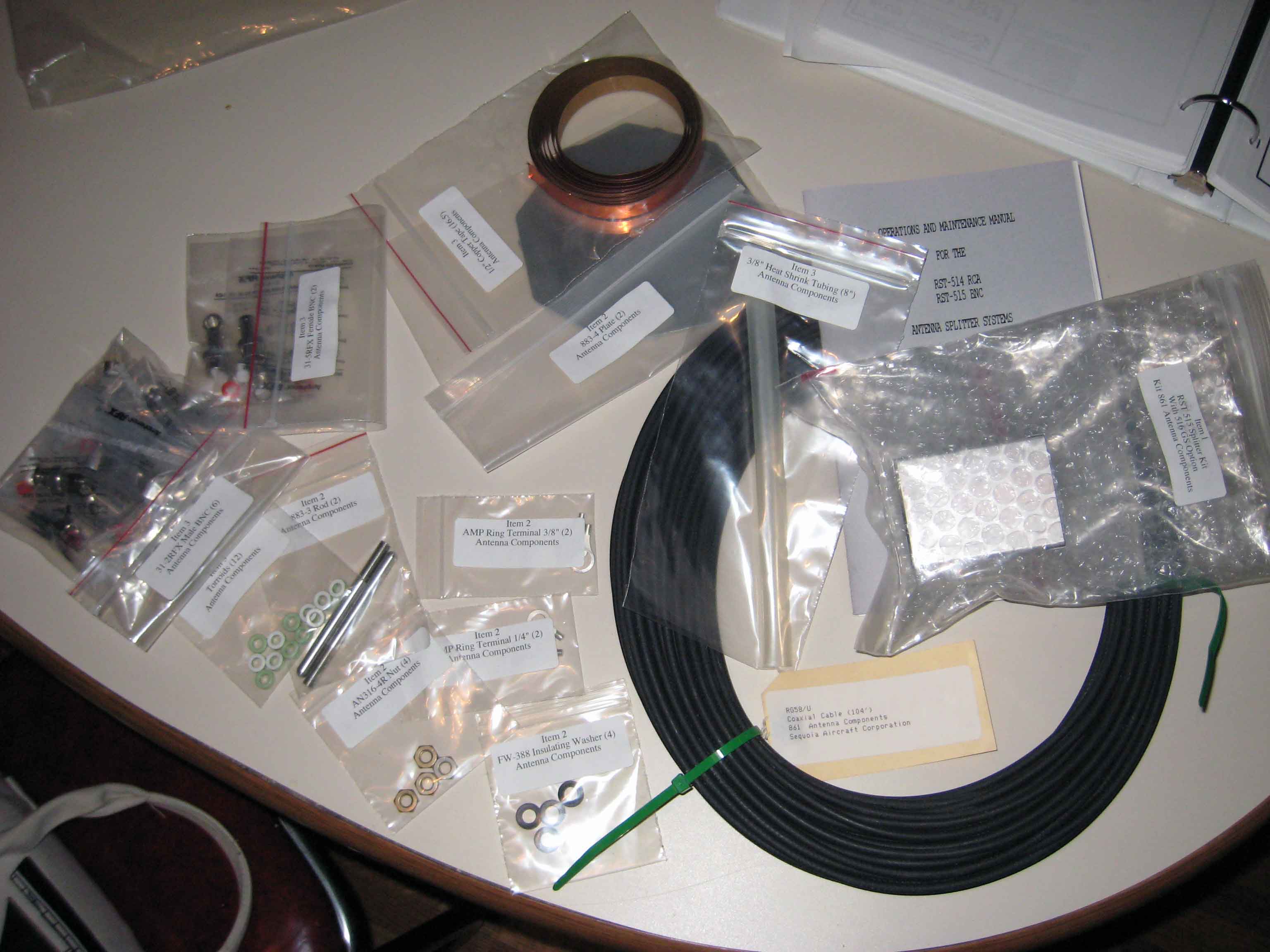 Here is the Sequoia Antenna Kit. I imagine you could find all these parts and order them separately but you may end up spending almost the same amount in the end so I just ordered the kit from Sequoia. Also, I'm not sure you can buy the splitter kit from RST anymore.