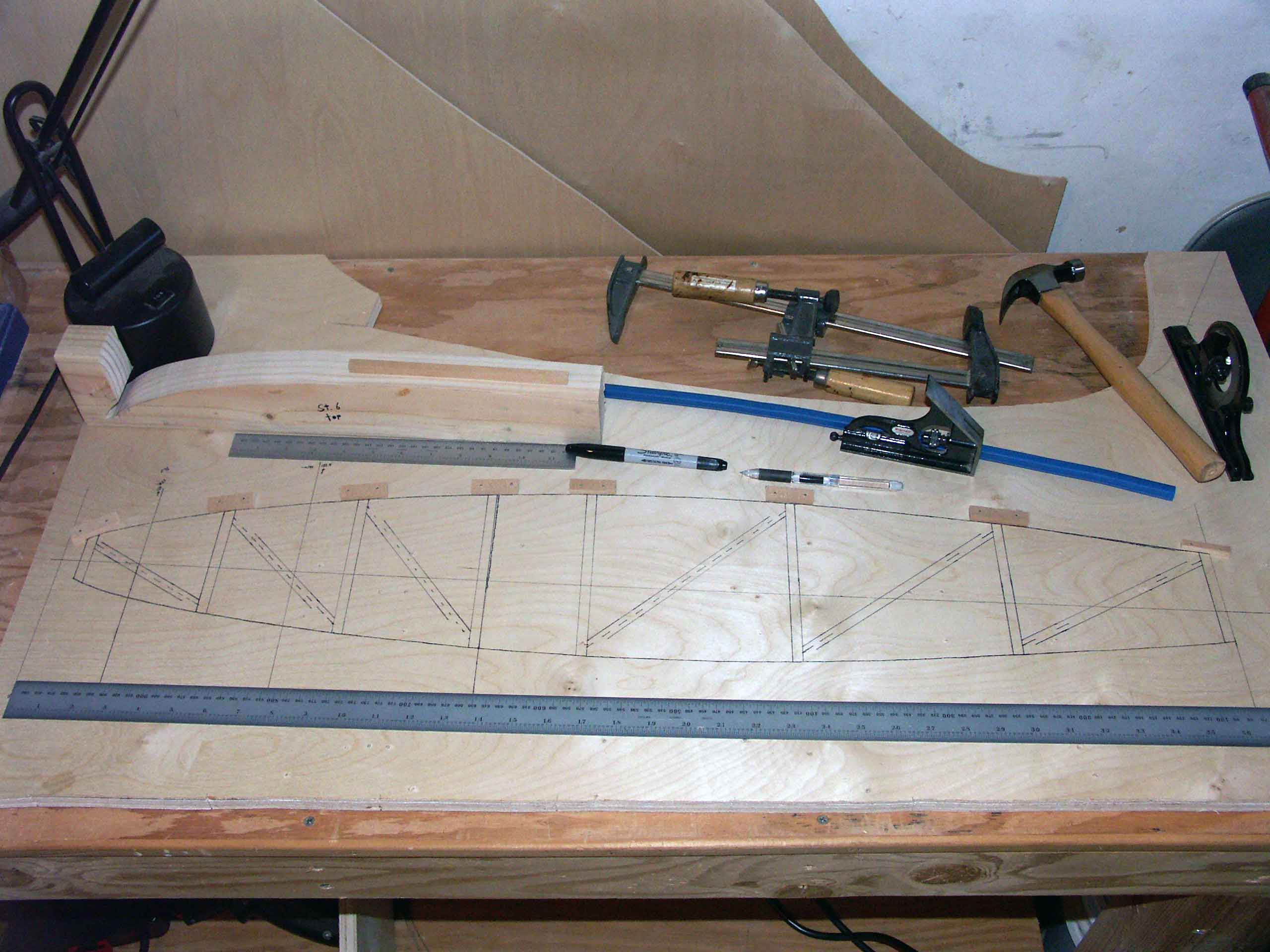 I also made a capstrip pre-bending jig for the top capstrip. When I get the wood, I can pre-bend the top one and check to see if I'll need to make a different pre-bending jig for the bottom capstrip, or if the top bending jig will work for the bottom as well. I want to make one full rib with this method before I try streamlining the process to see if anything needs changing.