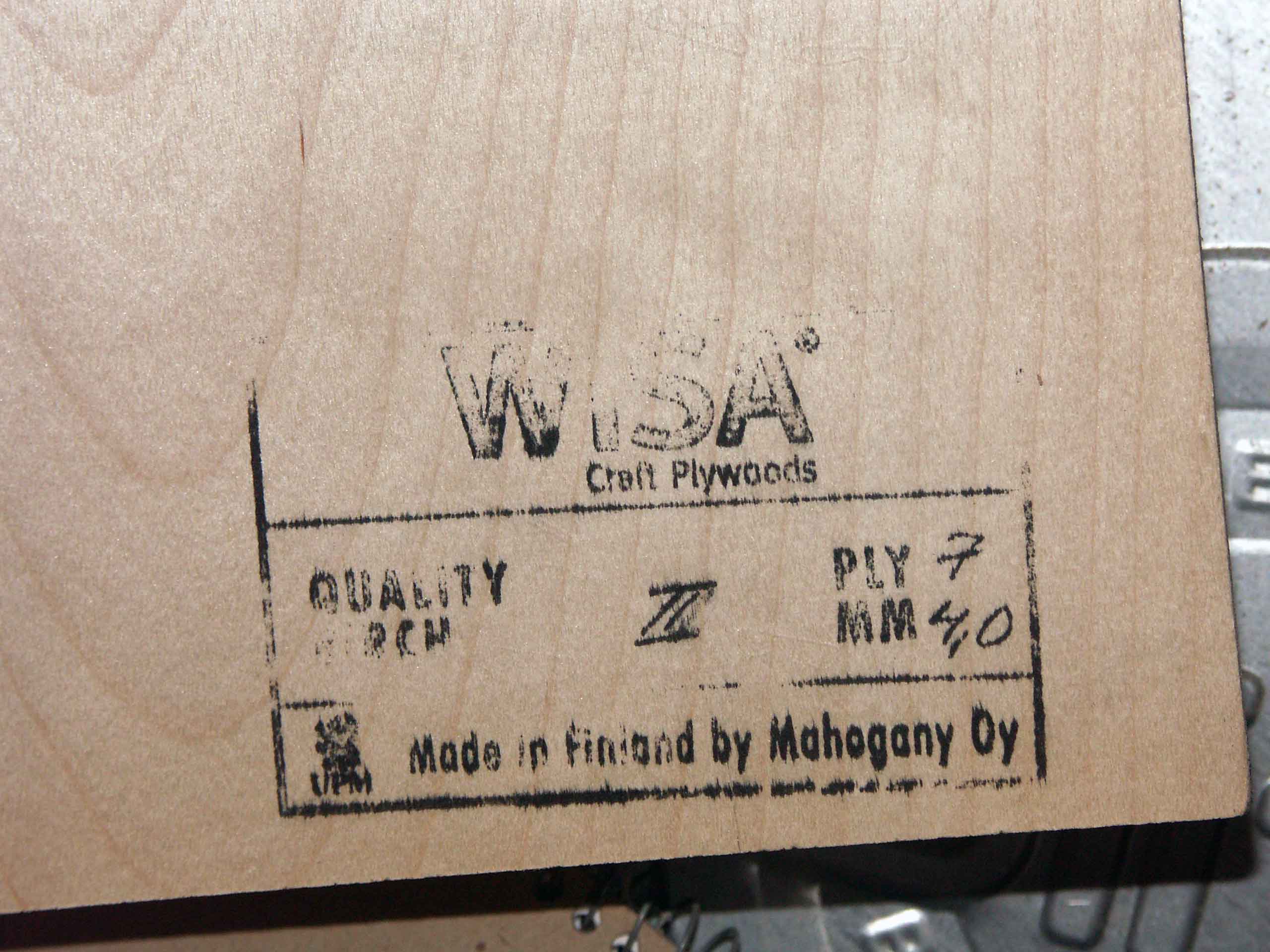 The plywood has the usual stamp and is rated GL-III. There are some knots visible on the outer plies which is probably why it's rated 3 and not 2. I checked with Alfred on this and I'll just avoid using the areas where there are knots and I should be fine.